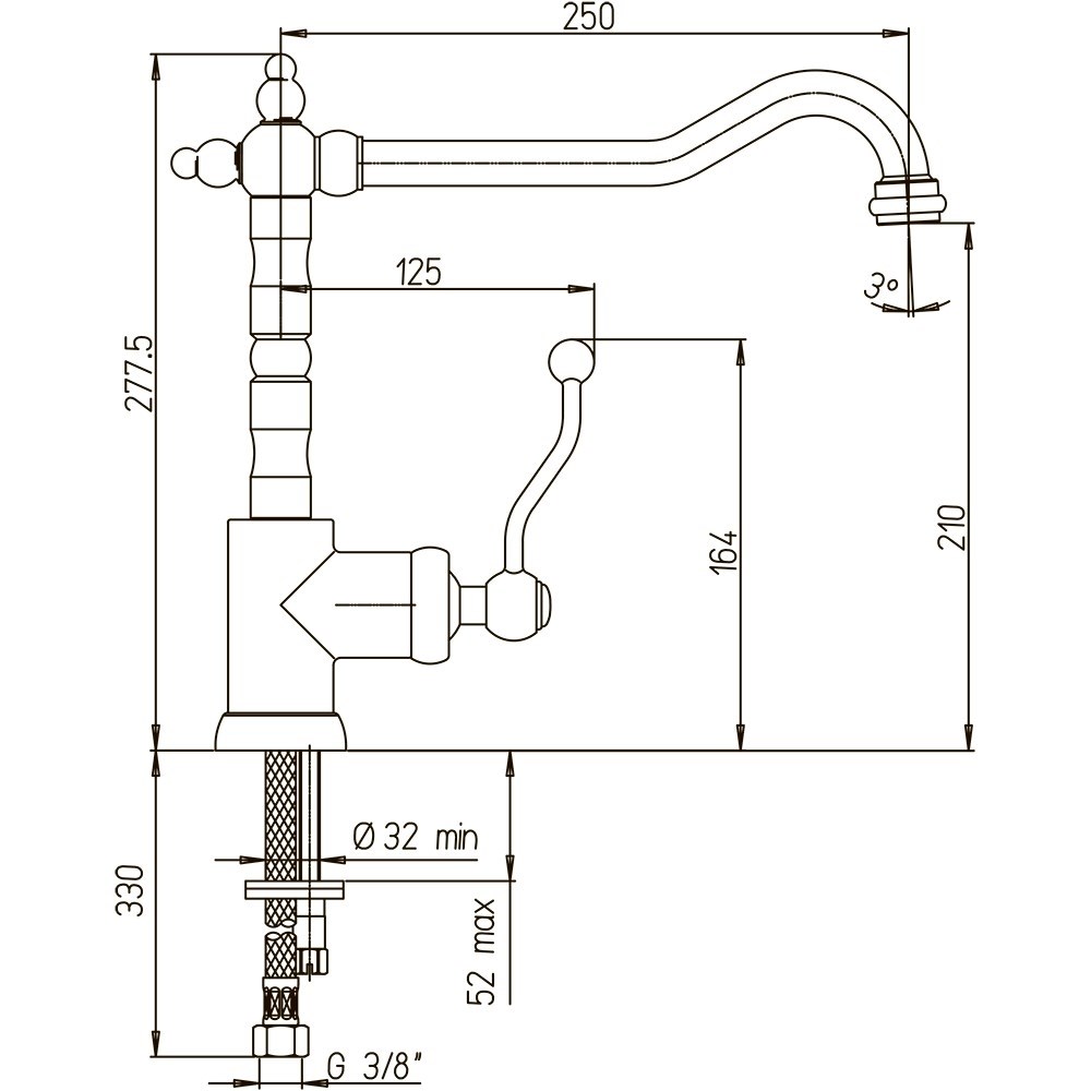 Стандарт подводки3/8" | Тип подводкигибкая | Высота излива210 мм |
