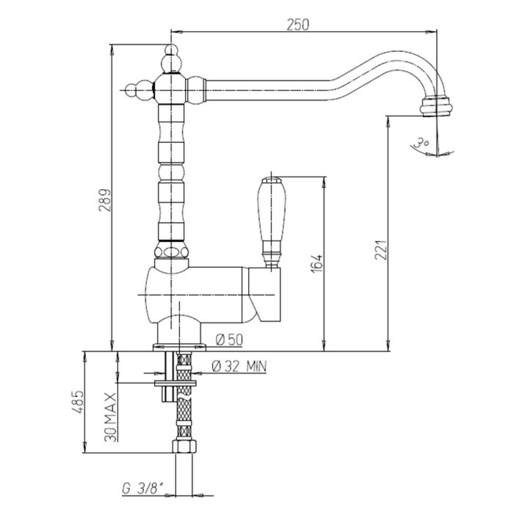 Высота излива221 мм | Назначениедля кухни | Тип управленияоднорычажный |