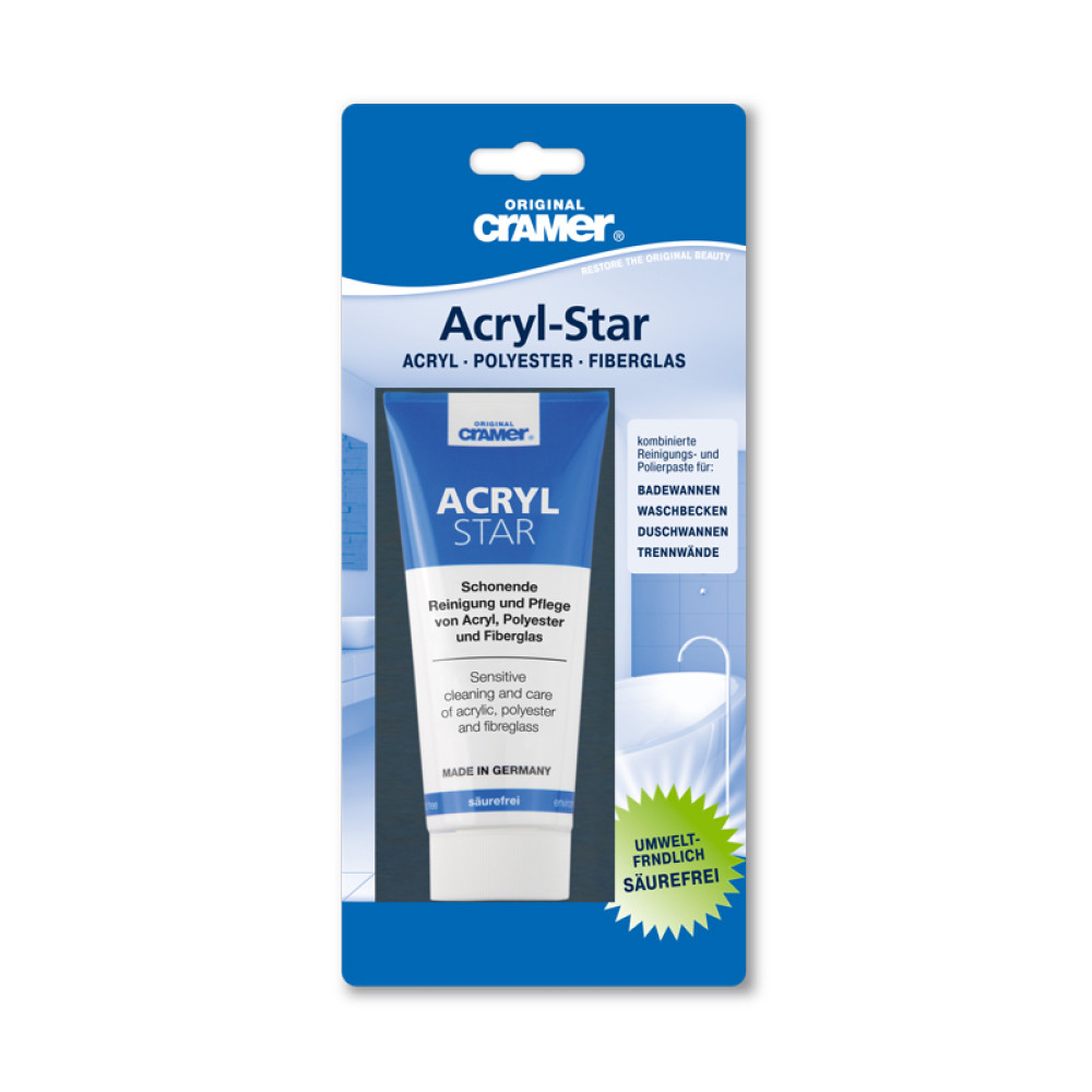 НАЗВАНИЕ Акрил-Стар 100 мл ПРИМЕНЕНИЕ Средство для очистки и полировки, а также мягкого удаления известкового налета, обесцвечивания, грязи и мелких царапин Идеально для ежесезонной и генеральной уборки ПОВЕРХНОСТИ Акриловые, полиэфирные и стеклопластиковые поверхности ПРЕИМУЩЕСТВА Мягко очищает и полирует чувствительные поверхности Не требует дополнительной полировки для удаления мелких царапин Концентрированный очистительный состав щадящий для кожи PH, обладает приятным запахом, экологически безопасен СПОСОБ ПРИМЕНЕНИЯ Очищение: Нанесите на влажную ткань или губку, тщательно потрите влажную поверхность сполосните теплой водой и затем протрите насухо Полировка: Отшлифуйте мелкие царапины при помощи шлифовальной бумаги, затем отполируйте тканью с Aкрил-Стар РЕКОМЕНДАЦИИ Хранить при +5° дo 30°C, ммаксимальный срок годности 3 года КОЛИЧЕСТВО 100 мл средства, по 1 листу шлифовальной бумаги с зернистостью в 1200 и 2500 гранул