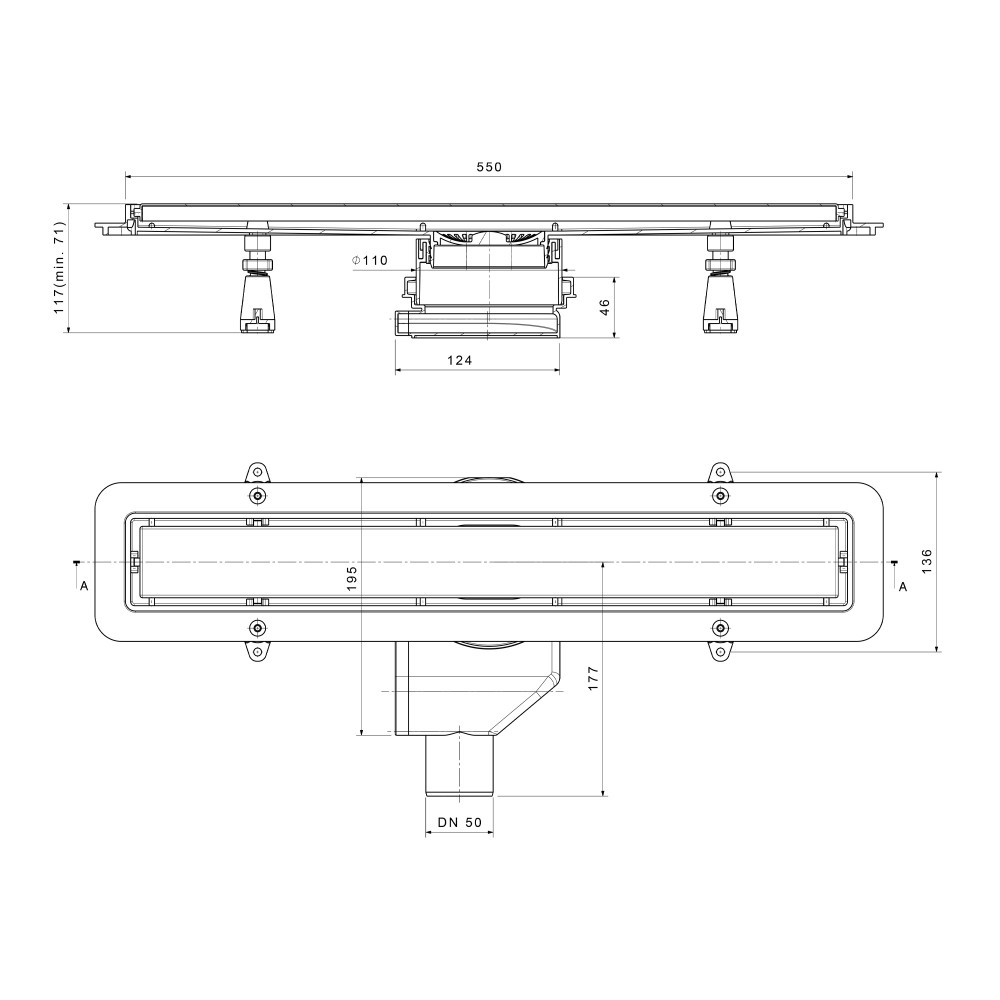 Длина, см55 | Комплектациядушевой лоток, дизайн-решетка, сифон, сухой затвор, грязеуловитель, опоры, гидроизолирующая прокладка | Материал изделиянержавеющая сталь |