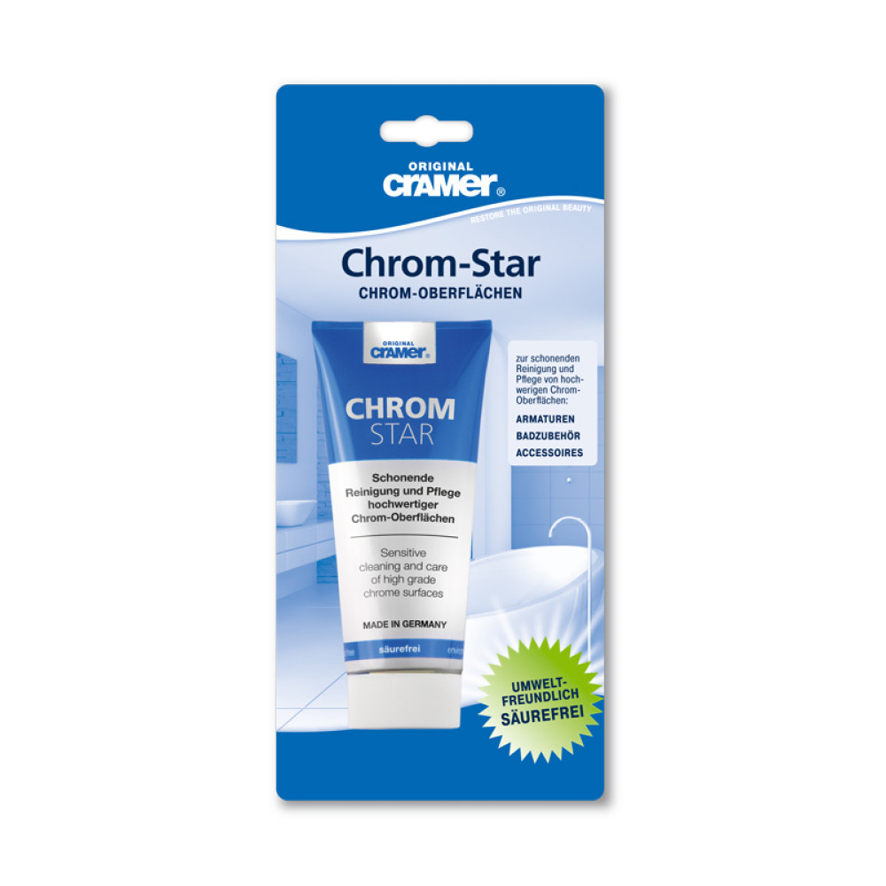 НАЗВАНИЕ Хром-Стар 100 мл ПРИМЕНЕНИЕ Для удаления стойких пятен и отложений ржавчины на хромированных поверхностях ПОВЕРХНОСТИ Полированные и матовые хромированные поверхности ПРЕИМУЩЕСТВА Одновременно тщательно и эффективно очищает поверхность Не содержит кислот и основан на комбинации элементов, безопасных для эмали Концентрированный очистительный состав Щадящий PH для кожи, обладает приятным запахом, экологически безопасен СПОСОБ ПРИМЕНЕНИЯ Очистка: Нанесите препарат Хром-Стар в количестве примерно с лесной орех на влажную губку и тщательно потрите влажную поверхность, спо- лосните теплой водой и протрите насухо. Полировка: отполируйте очищенную поверхность, нанеся препарат Хром- Стар на влажную хлопковую ткань, смойте и протрите насухо РЕКОМЕНДАЦИИ Хранить при +5° до 30°C, максимальный срок годности 3 года