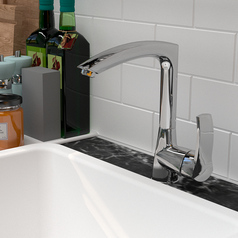 - Поворотный излив дает больше возможностей для использования на кухне.