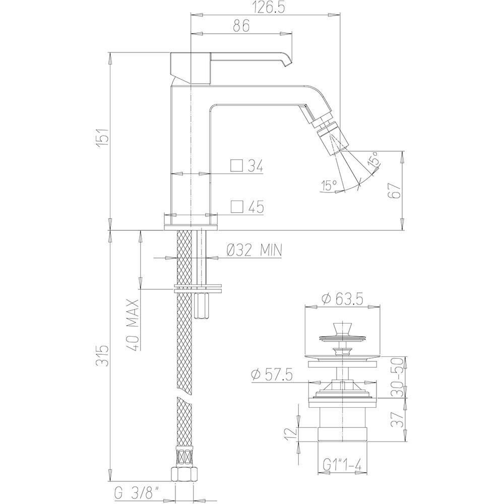 Высота излива67 мм | Назначениедля биде | Тип управленияоднорычажный |