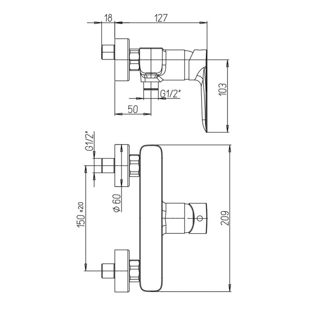 Акцентная геометрия и непревзойденное качество – все это сочетается в авторской коллекции итальянского дизайнера Mirko Bosio - NOVE. Однорычажный смеситель для душа выполнен в оригинальной форме, что можно отнести как к нестандартному конструктивному решению, так и к элементу шика. Широкая ручка рычага сочетается с квадратным корпусом.