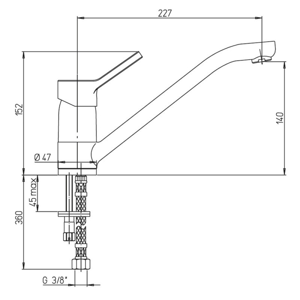 Стандарт подводки3/8" | Тип подводкигибкая | Высота излива140 мм |