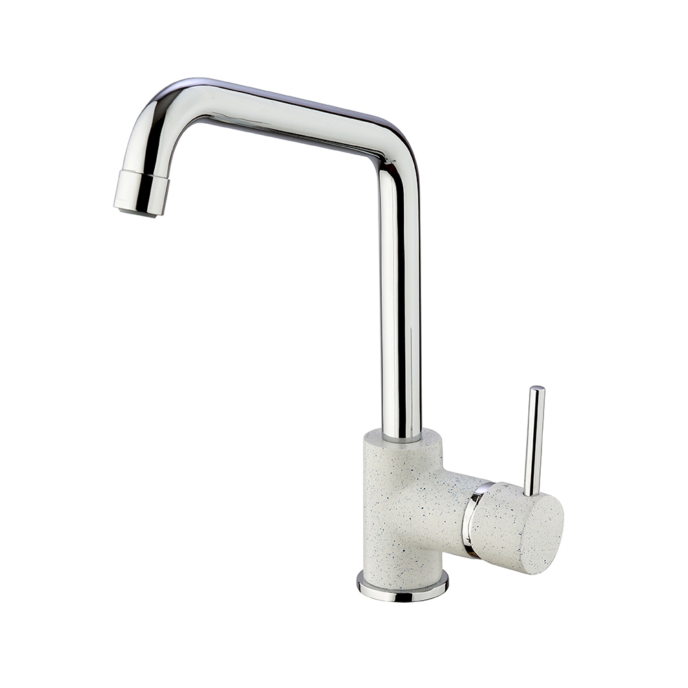 Белый с вкраплениями (гранит), комбинация черного и хромого цветов в корпусе смесителя, и три варианта бежевого цвета: сахара, бежевый с вкраплениями (гранит) и нежный трюфель. Теперь точно получится попасть в цвет столешницы и/или цвет мойки либо создать контрастные сочетания. Все варианты покрытия, включая покрытие под камень, выполнены по специальной технологии, сохраняющей цвет и фактуру надолго и облегчающей уход за смесителем.