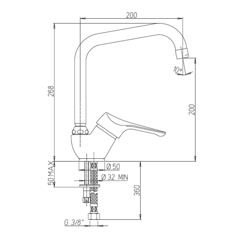 Стандарт подводки3/8" | Тип подводкигибкая | Высота излива205 мм |
