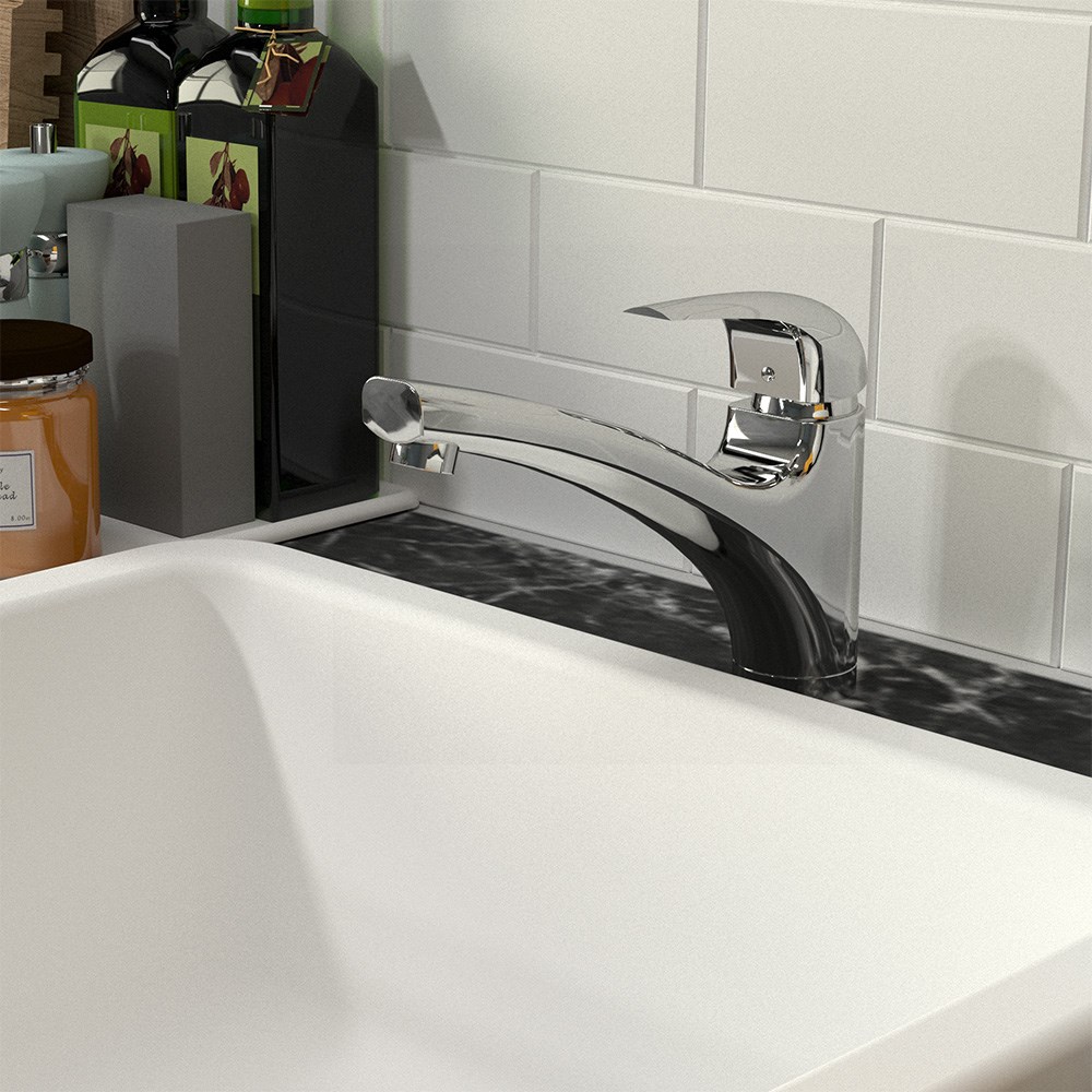 - Поворотный излив дает больше возможностей для использования на кухне.
