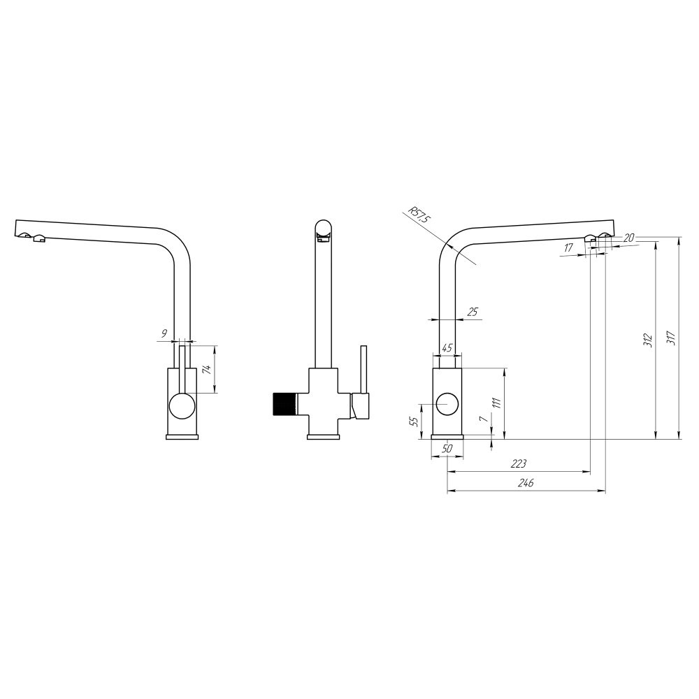 Монтажна мойку | Тип подводкигибкая | Высота излива317 мм |