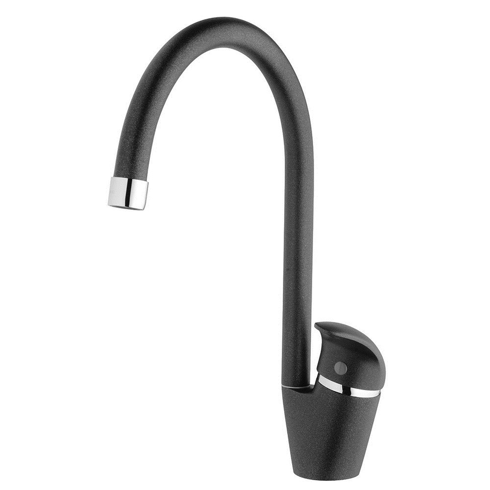 Однорычажный смеситель SICILY для кухни выполнен в цвете “черный гранит” с вкраплениями хромовых элементов, добавляя оригинальность в интерьер. Благодаря высокому корпусу и поворотному изливу этот смеситель открывает больше функциональных возможностей для использования, позволяя менять направление потока воды, использовать глубокую посуду. Удобный рычаг расположен сбоку, что позволяет открыть воду локтем, если руки испачканы. Смеситель SICILY отлично подойдет для кухонь различных размеров и стилей, например, классика, модерн или минимализм.