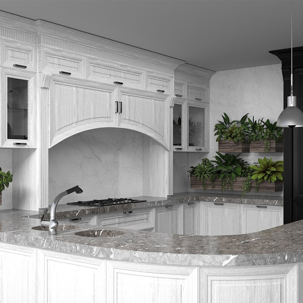Дизайн смесителя подойдет для кухонь в стилях классика, модерн, минимализм.