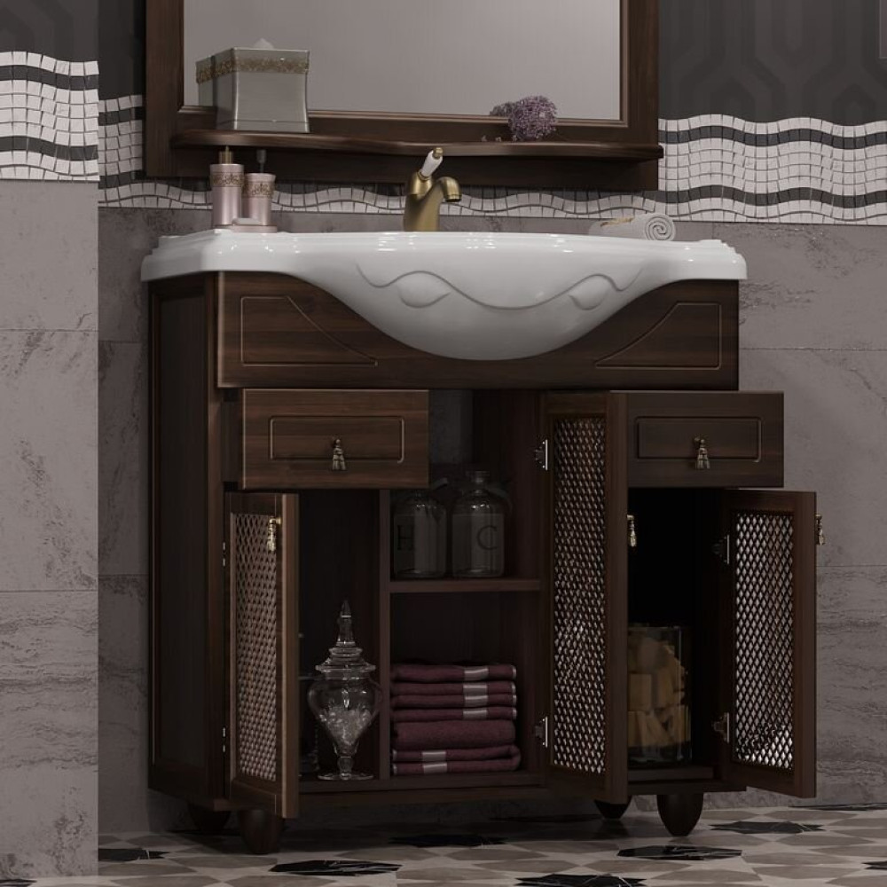 Тумба OPADIRIS Тибет 85, орех антикварный (нагал), с решеткой (под раковину Америка 85)