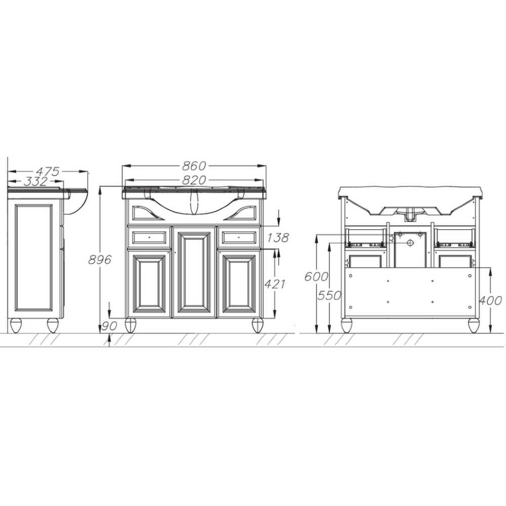 Технические характеристики Тумба OPADIRIS Тибет 85, орех антикварный (нагал), с решеткой (под раковину Америка 85)