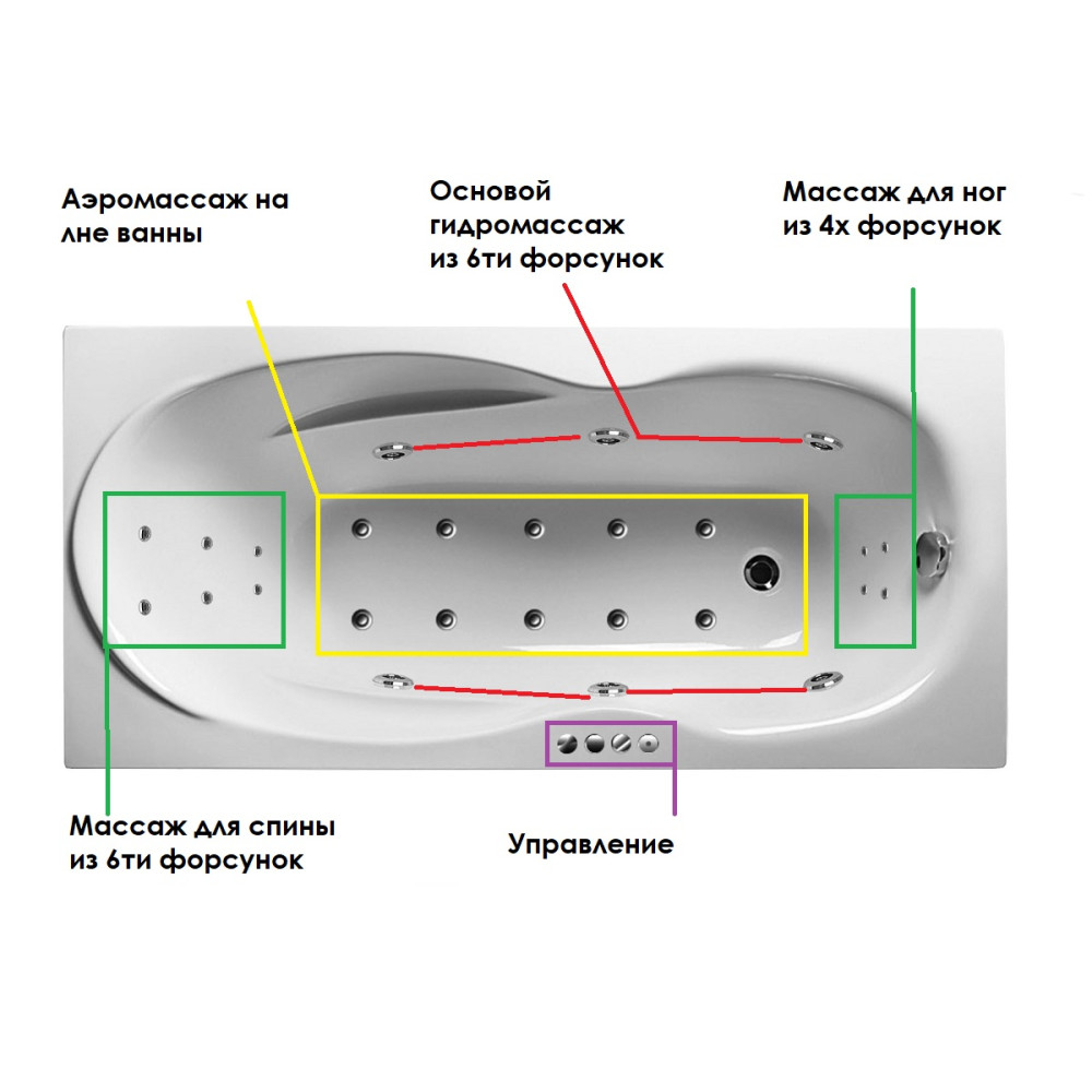 | Вес, кг.22 | Высота ванны на каркасе60 | ГидромассажВозможна установка гидросистем |