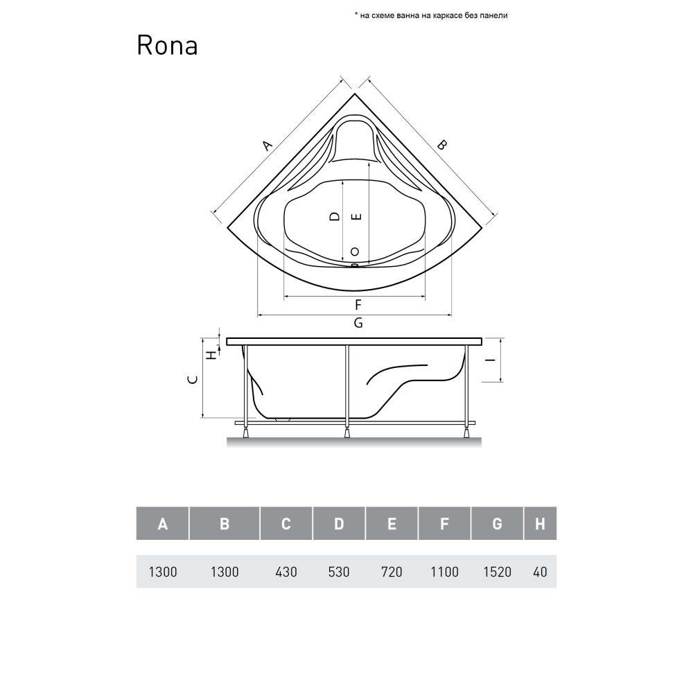 Технические характеристики Ванна акриловая Relisan Rona 130x130