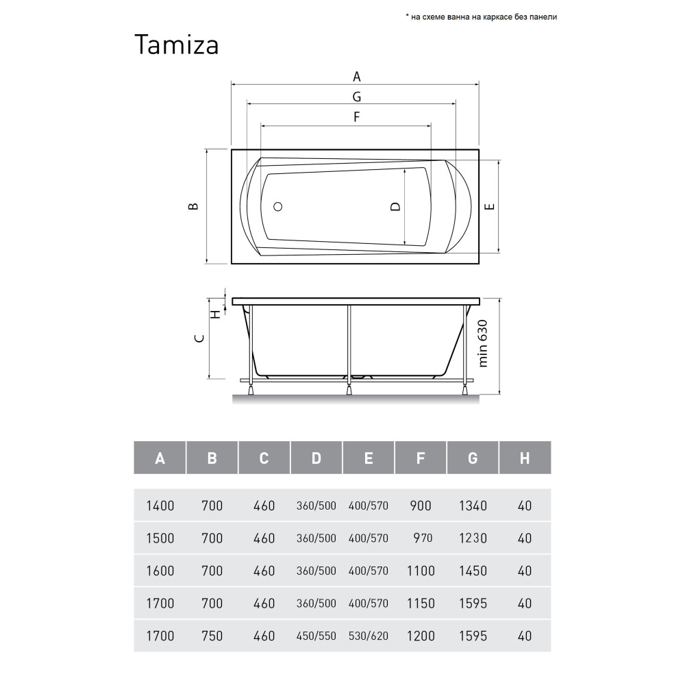 Технические характеристики Ванна акриловая Relisan Tamiza 160x70