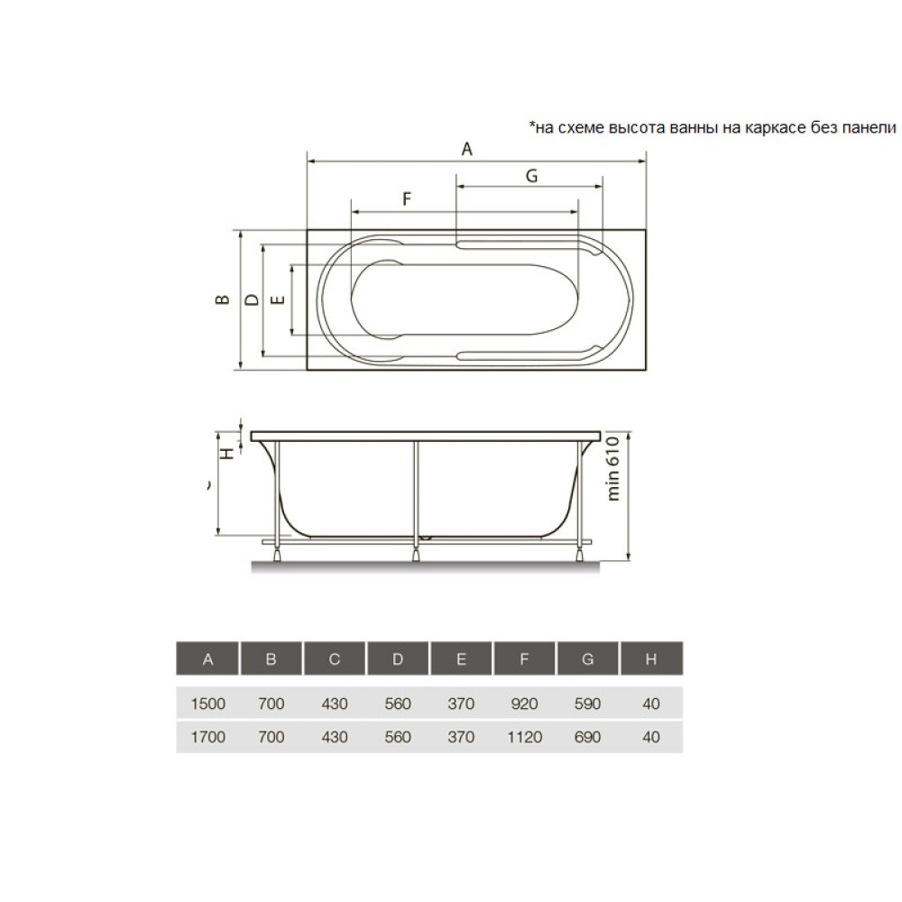| Армирующий слойСтекловолокно | Вес, кг.17 | Высота ванны на каркасе60 |