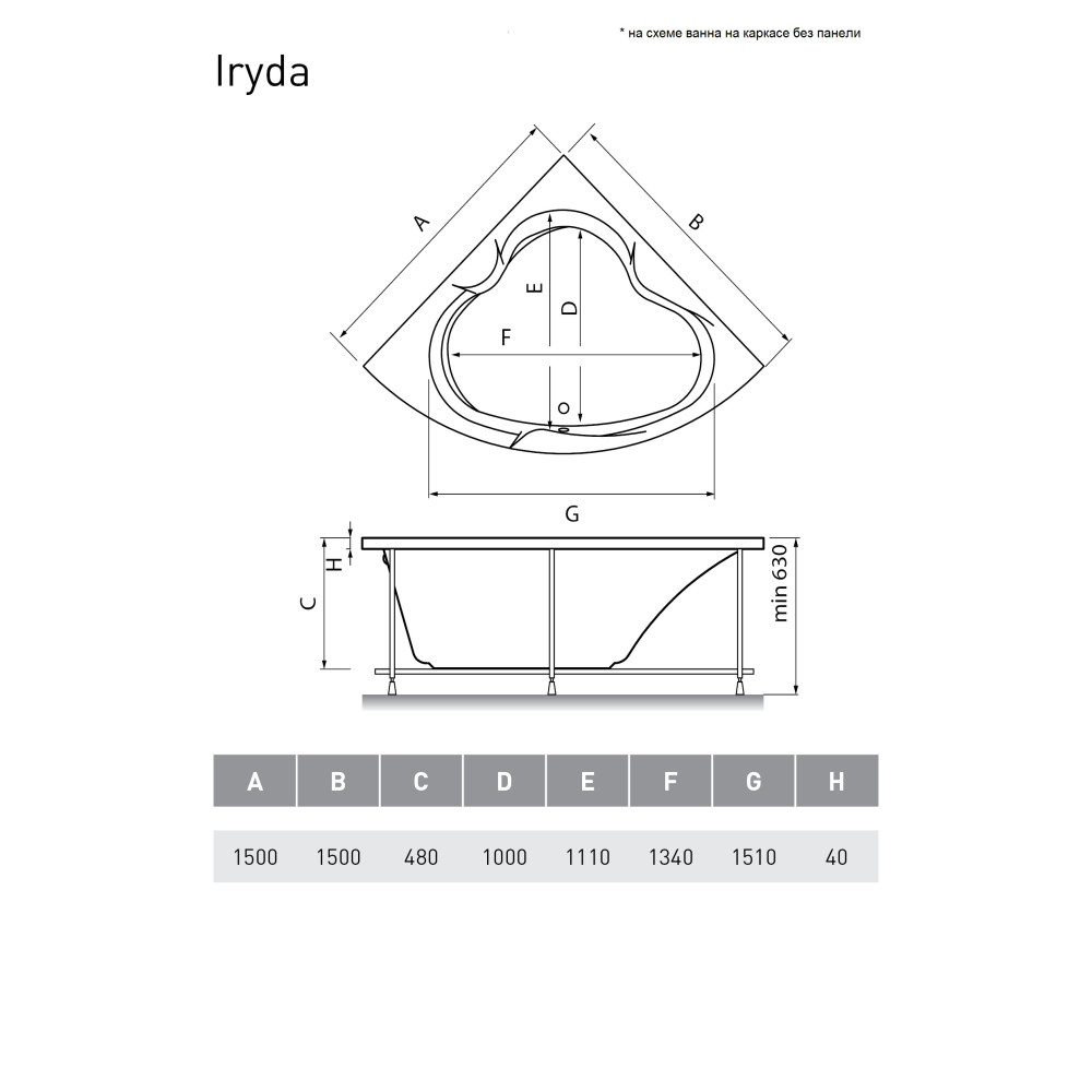 Технические характеристики Ванна акриловая Vayer Iryda 150x150