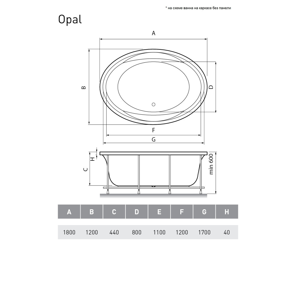 | Вес, кг.35 | Высота ванны на каркасе60 | ГидромассажВозможна установка гидросистем |