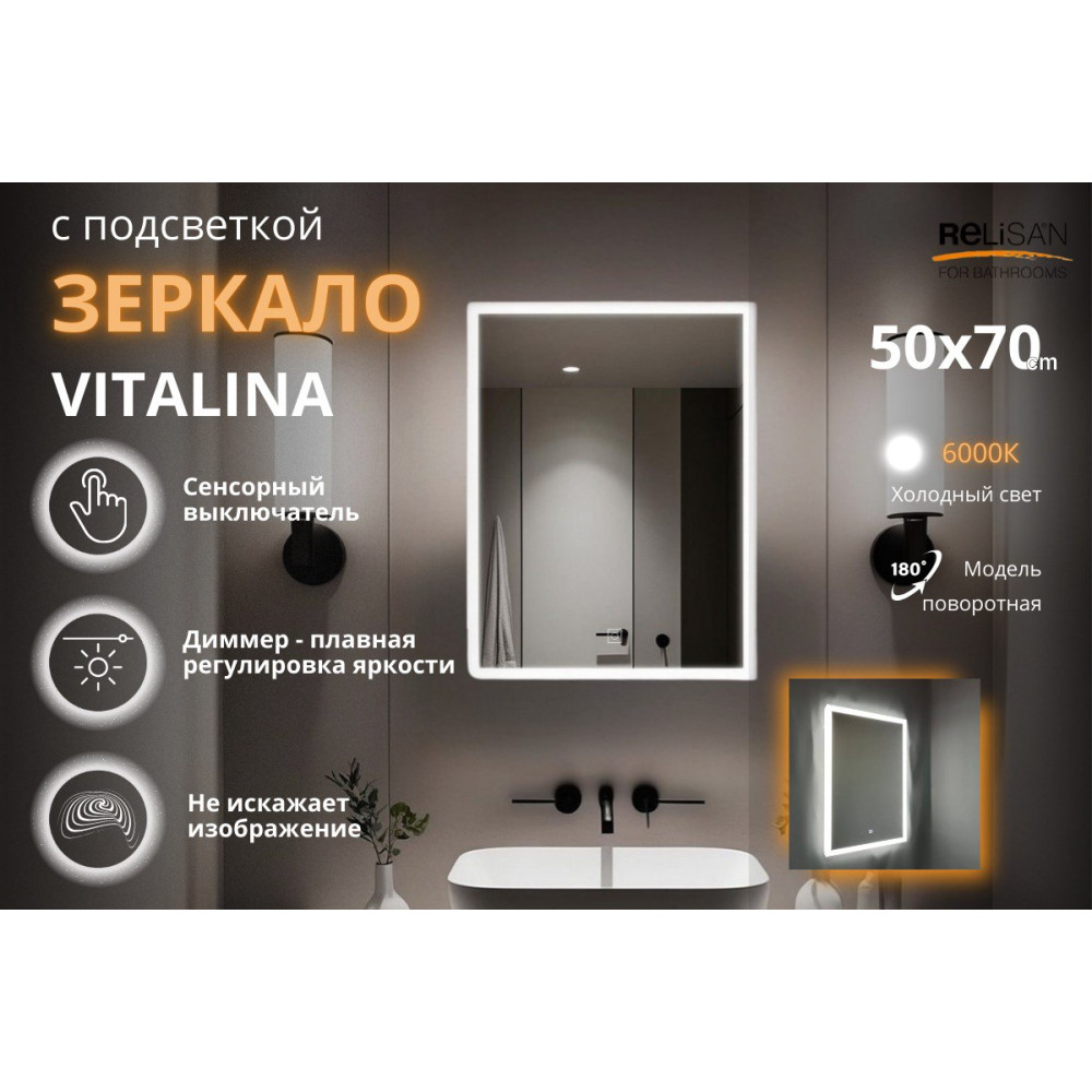 Зеркало Relisan VITALINA 500х700 с подсветкой - купить в Москве